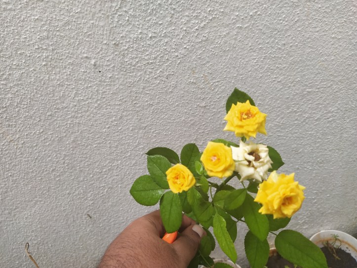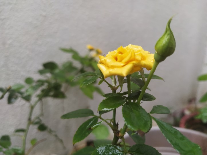 Amidst the heavy rains, Six Yellow roses have bloomed today.