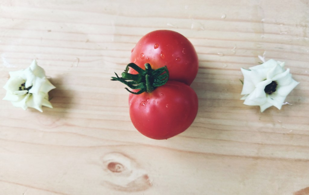 Tomatoes which were not plucked due to work have binded themself together and looks like twins.