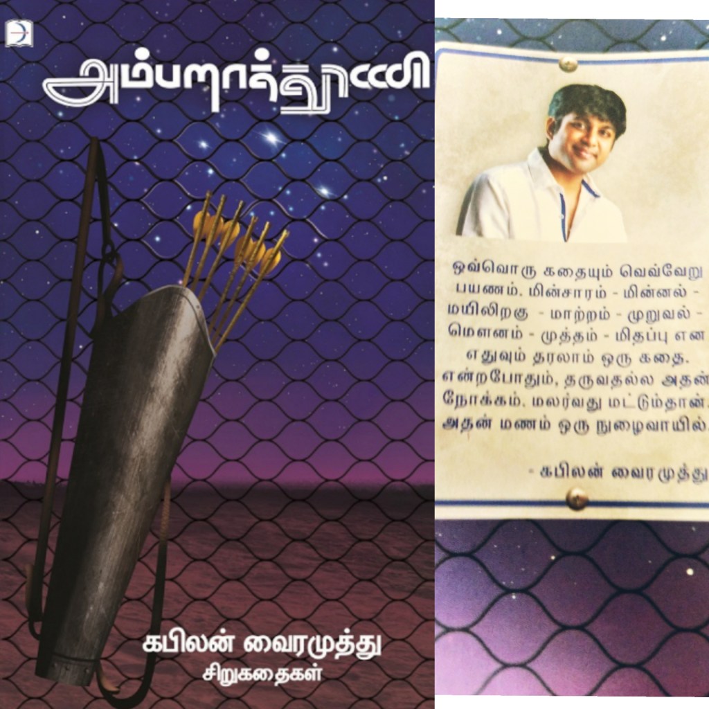 கபிலன் வைரமுத்து எழுதிய அம்பறாத்தூணி சிறுகதைத்தொகுப்பு. டிஸ்கவரி புக் பேலஸ் வெளியீடு.