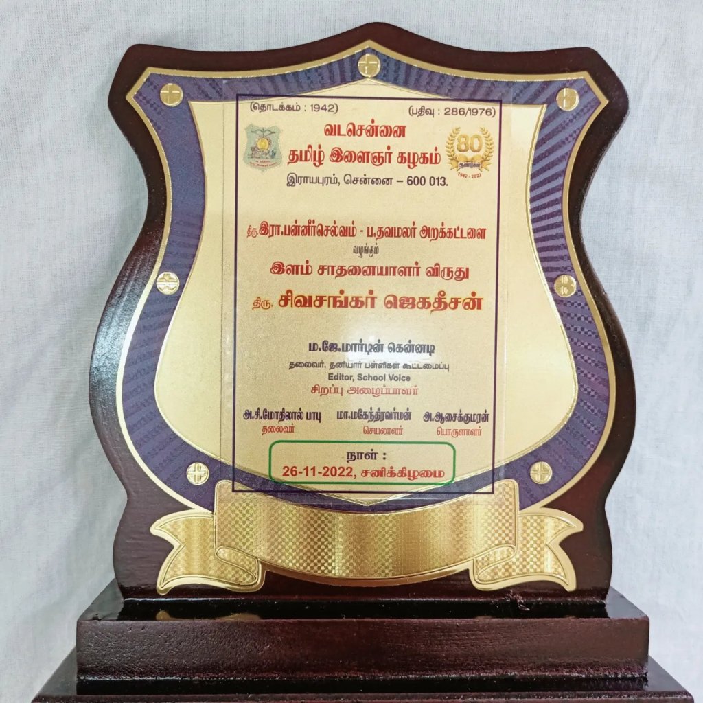 நேற்று 26-Nov-2022(சனிக்கிழமை) மாலை வடசென்னை தமிழ் இளைஞர் கழகத்தின் நிகழ்வில் – “இளம் சாதனையாளர் 2022” விருது எனக்கும் வழங்கப்பட்டது.