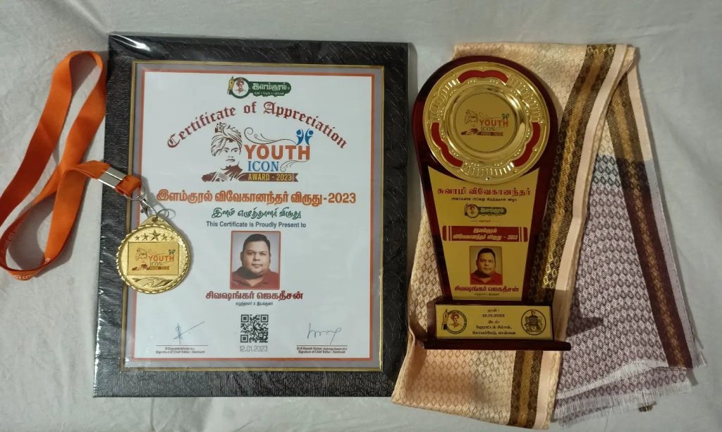 சுவாமி விவேகானந்தரின் 160வது பிறந்த நாளையோட்டி (12-Jan-2023) இளம்குரல் அறக்கட்டளை சார்பில் நடந்த விழாவில் எனக்கு “இளம்குரல் விவேகானந்தர் விருது – 2023” வழங்கி கௌரவித்தனர்.