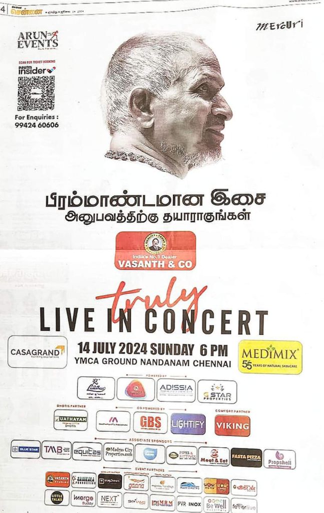 இன்று (14-July-2024) மாலை சென்னையில் நடைபெறும் The King is back இசை நிகழ்ச்சியில் நானும் கலந்து கொள்கிறேன்.