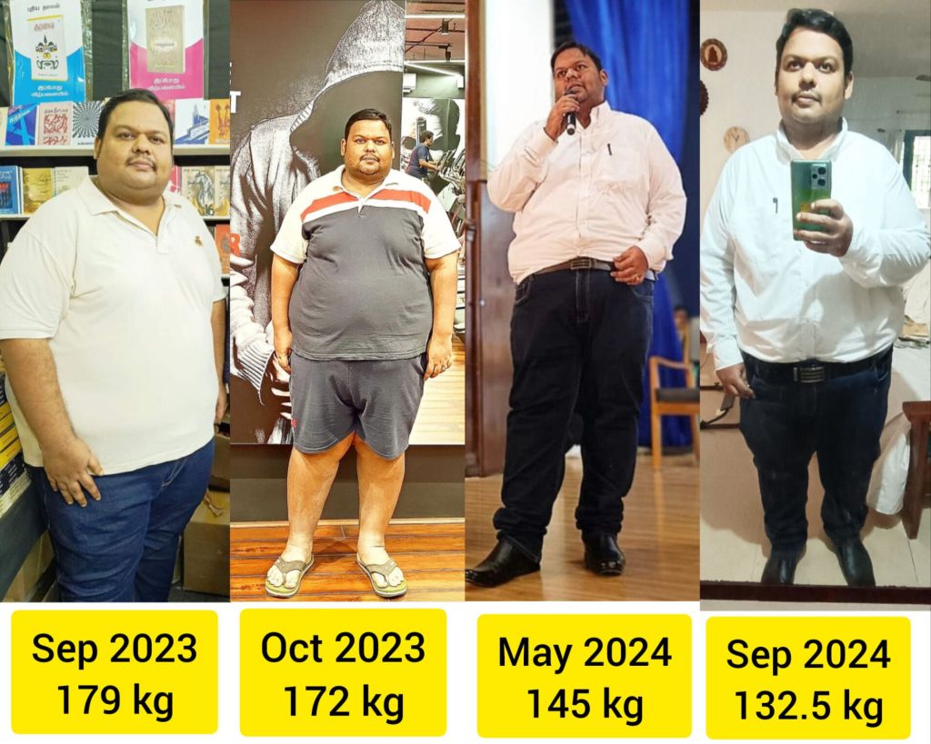 எடைக்குறைப்பு பயணத்தில் ஒரு வருடத்தில்(12 மாதங்களில் ) 47 கிலோ குறைந்திருக்கிறேன்.