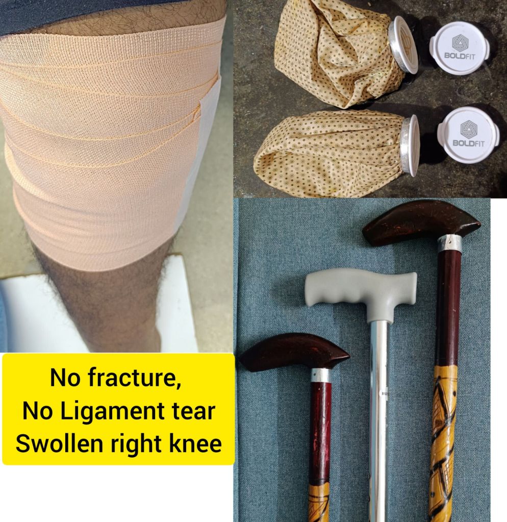 ஆனால் அப்போது வீக்கம் பெரிதாக இருந்தது. Crepe Bandage போட்டு விட்டார்கள்.